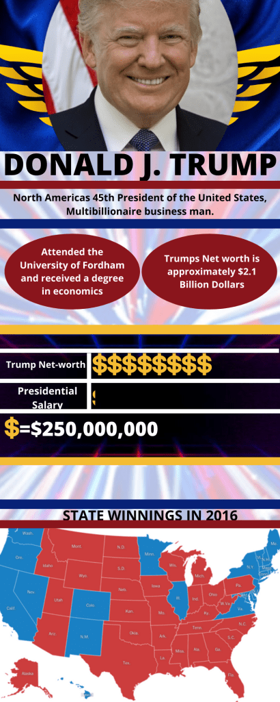 I chose to do my Infographic on trump again because he is up for re-election soon and handling a great load of work right now for our country.