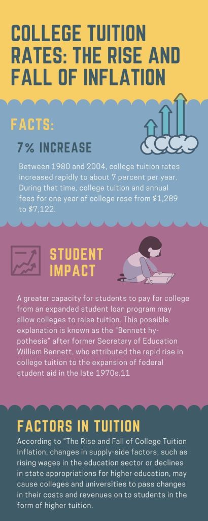 I found “The Rise and Fall of College Tuition Inflation” to be interesting since the article answered many questions I had. According to “The Rise and Fall of College Tuition Inflation, statistical evidence suggests that changes in labor costs help ex- plain the rapid increase in college tuition inflation during the 1980– 90 period. The article documents the change in college tuitions over time and explains the rise and fall in college tuition inflation. I find the amount in change over time interesting in prices since they increase so much. College is extremely expensive and takes some time to prepare, especially income funding. A decision on college tuition expenses must be planned out in order to achieve a little less stress.