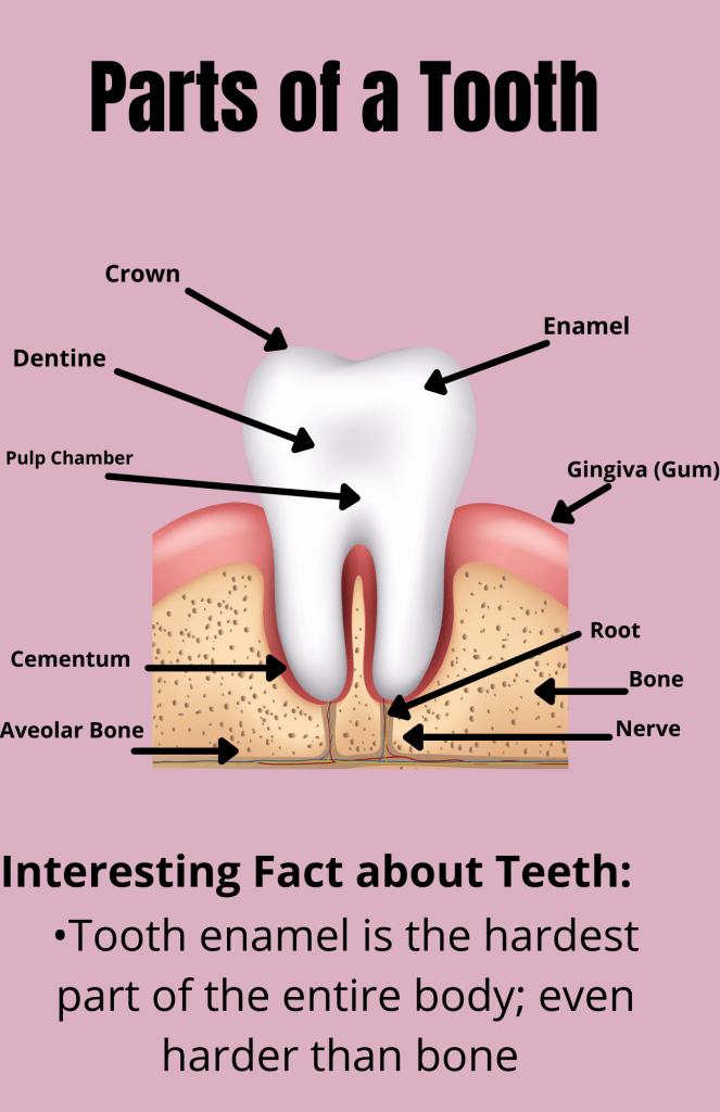 When creating this infographic I used Canva! Canva is always my go to program because I use it for BUnow and now with taking this class I am learning more how to navigate my way through this program with all the different infographics I am creating. I started from scratch all I did was get a carton tooth off of google but I then began to label all of the parts of the tooth. I then added an interesting fact and added a title to make this flyer more appealing to read and look at with the digram I created. I really liked the program I used because I am used to using it and all of the work this semester for this class I have been using Canva. Canva is a great program and very easy to use and navigate.