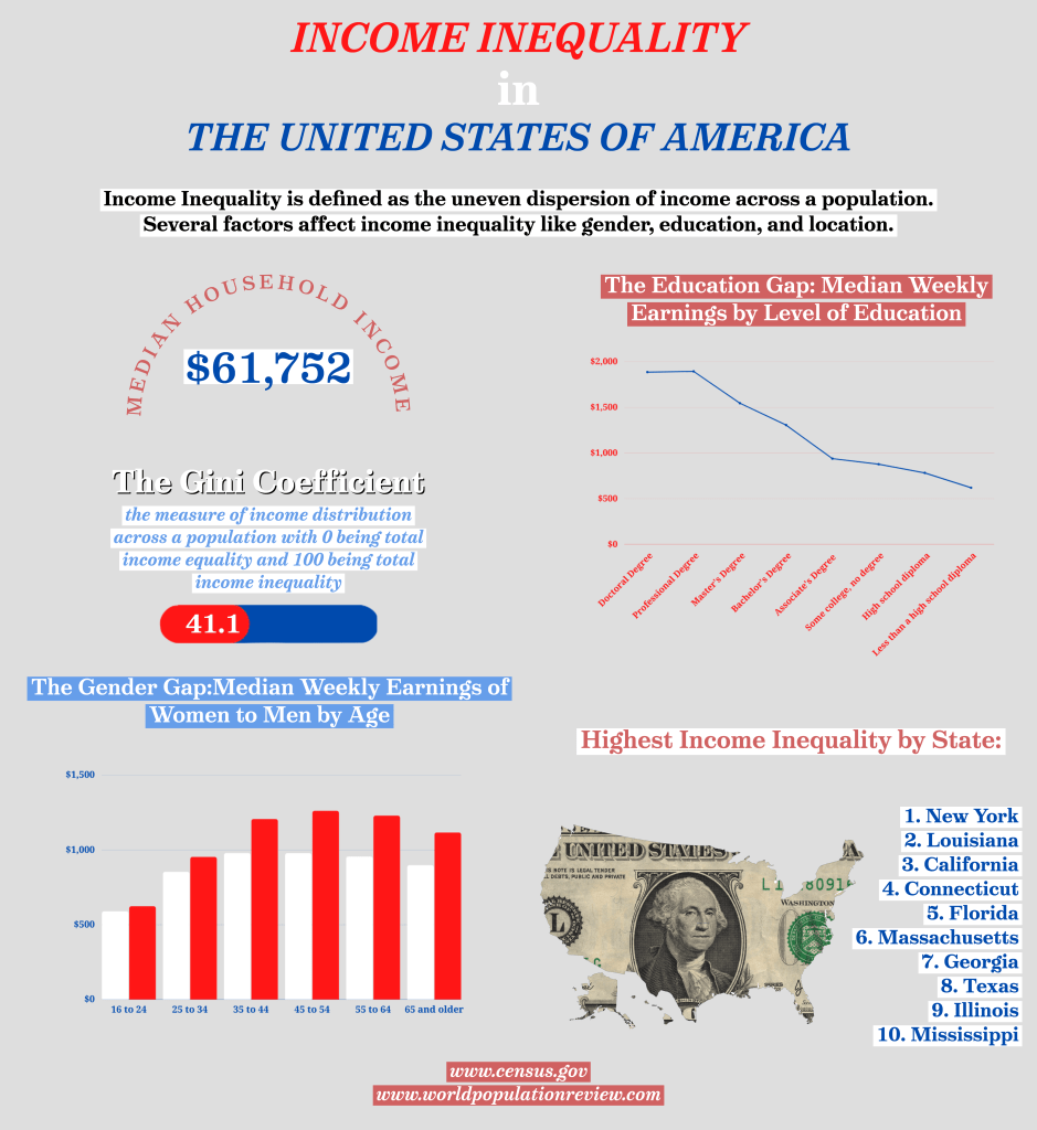 This week I chose forms of income inequality because I knew there would be a lot of opportunity to utilize graphs, lists, charts, text, and photos.