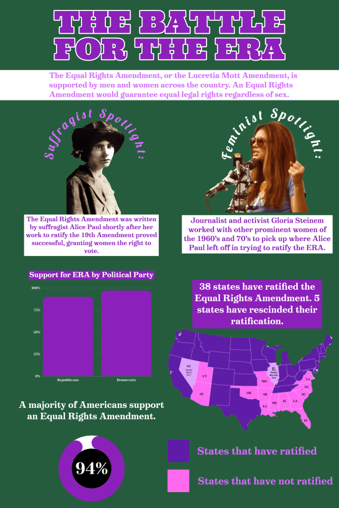 This week I did my infographic on the ERA. I made this infographic with Adobe Spark and Canva and it took me roughly three hours. There was a lot of information I could have included and pictures I specifically wanted to put but I didn’t want it to look too cluttered. This week I used a map, two images, two textboxes, and two charts.