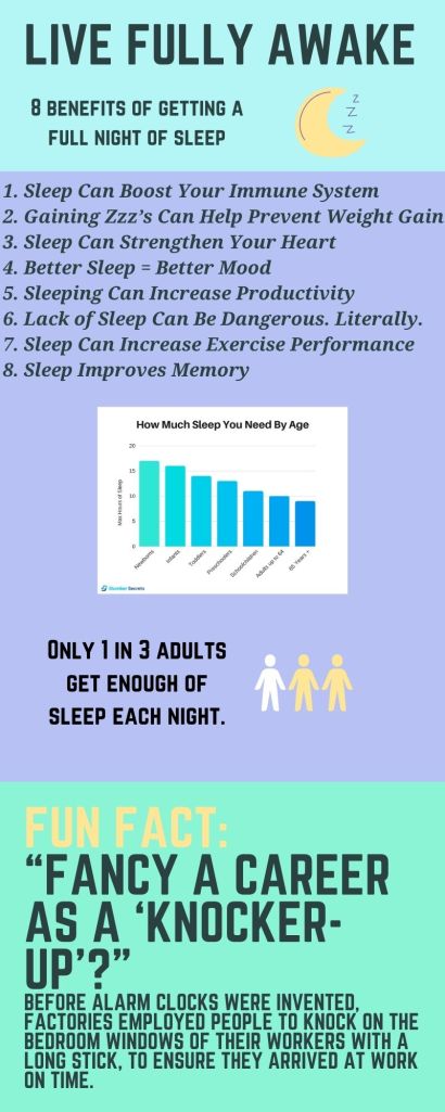 This week’s infographic focused on Health and Environment. For me, I chose to sleep as my topic. I chose this topic because sleep is very important for your everyday life and I have always struggled with getting enough of it. Researching it was easy as there are many reliable websites and studies on it. The researching process did not take me long as I used the CDC website and SCL Health website. They both provided me with quick, accurate, and interesting information that I was able to use in my infographic. Creating my infographic I used the online service of Canva. It is by far my favorite and it allows me to bring my ideas to life. I started from scratch for this week’s infographic as I wanted to make sure I had enough room for everything that I had in mind. As I was designing this infographic, I wanted to use colors that would in a nursery or bedroom, soft colors. As for the font, I wanted it to be in the middle of soft and bold because the topic needs to catch the eye of the viewers. I used a chart and a map to get the point across of the number aspect of how much sleep you need. Using too many numbers can get confusing so the chart is what I went with. Overall this week’s infographic did not take me long and I liked how it turned out in the end!