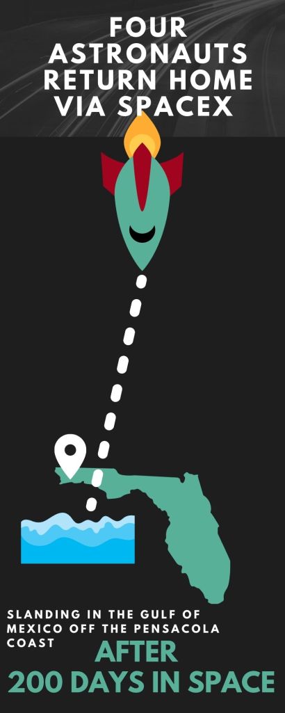 For this assignment I used Canva to create my infographics. I used a template because I was having trouble determining where I wanted to go for this one. I like Canva because of how easy it is to use. The elements of the story that caught my attention was the names of the astronauts as well as the amount of time they were in space. For this reason, I made infographics around them. I did not conduct much research aside from that of scrolling through Thomas’ twitter and the NASA website for the images included. It took me about 3 hours to do this assignment. My design process was just collecting the images I needed and putting them together with the information already provided by the story. This type of assignment is very challenging so it was hard to work through. I also felt as though I couldn’t be as creative as I wanted to be since there were only 4 stories to design around.