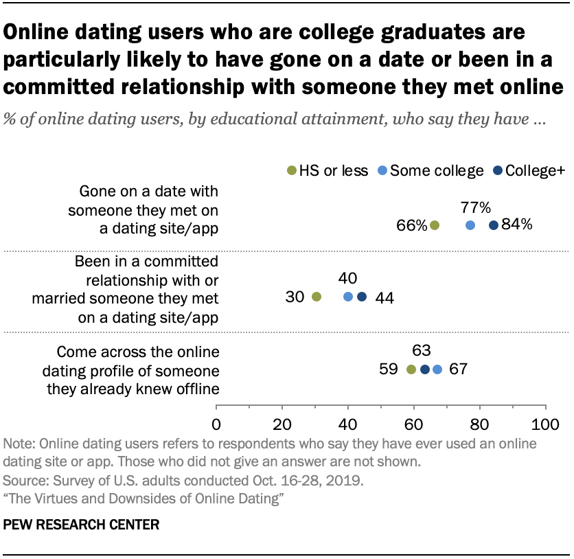 College students are a solid demographic for many online dating apps. 40% of college students have been in a committed relationship with someone that they met online. It’s also common to come across a dating profile of someone you already know, according to the 67% of college students, according to Pew Research Center.